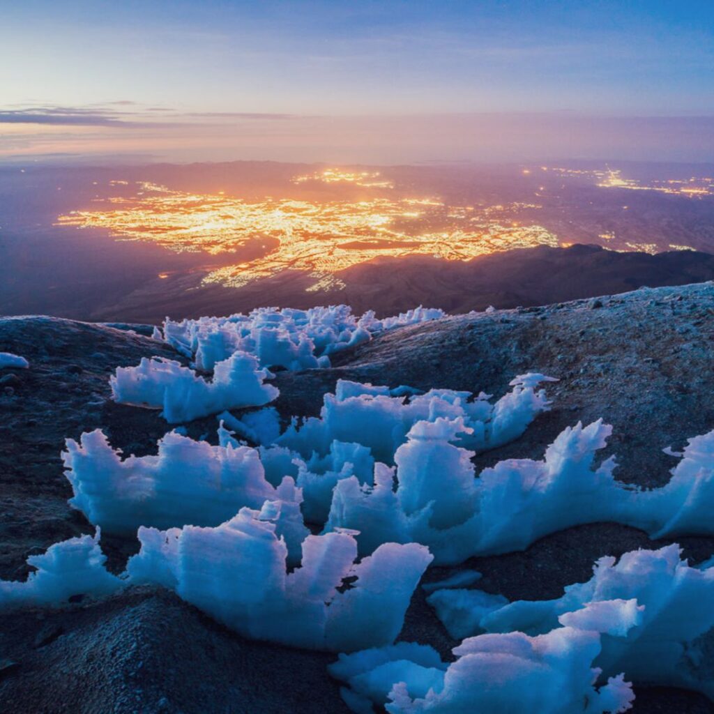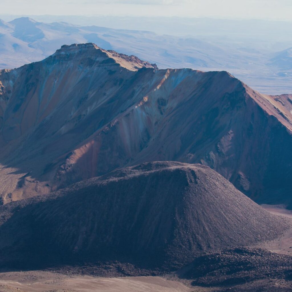 Szczyt Chachani: O wschodzie słońca, około 9:00 rano, staniemy na wierzchołku Chachani. Widok stąd jest absolutnie oszałamiający – panoramiczna perspektywa na otaczające wulkany Misti, Pichu Pichu, rozległą pustynię i miasto Arequipa w oddali. To niezapomniane poczucie triumfu i spełnienia po tygodniach przygotowań i dniach wysokogórskiego wysiłku.
