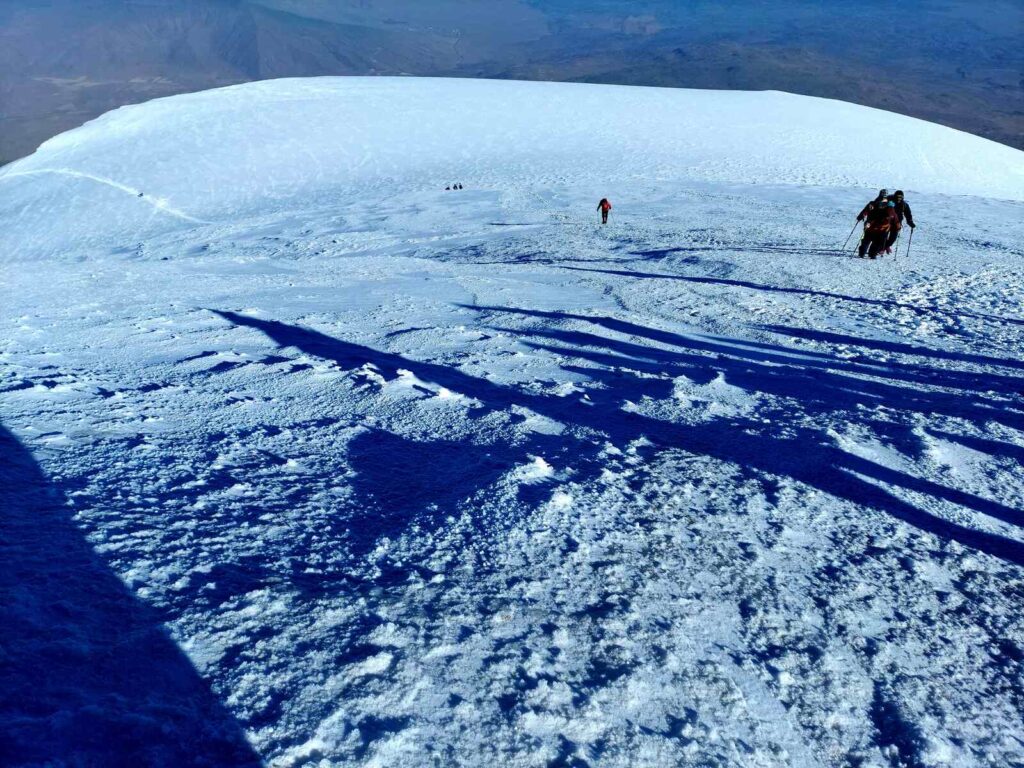 Na Araracie jest lodowiec, który utrzymuje się tam cały rok. Kiedy do niego dotrzemy, zakładamy raki. Z tego miejsca jest już tylko ok. 30-40 minut do samego szczytu, z którego rozpościerają się widoki na Iran, Armenię i drugą świętą górę Kurdów zaraz po Araracie, Tendurek.